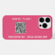 Choose Colours and Font - iPhone Case with Your Special QR Code Info and Custom Text Personalized Modern iPhone Cases Gift - Add Your QR Code - Image or Logo - photo / Text - Name or other info / message - Resize and Move or Remove / Add Elements - Image / Text with Customization Tool. Choose / Add Your Favourite Background and Text Colours / Font / Size ! Please see my others projects / designs. You can also transfer this designs to more than 1000 Zazzle products. Good Luck - Be Happy :)