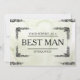 This 5" x 7" beautiful time to Your Service Is Requested as Best Man Groomsman invitation card. This is best for the groom. If you looking at asking someone to be your groomsman for your future wedding, then why not choose this groomsman cards. This customized invitation card will make your friend, brother, cousin, nephew, son or whoever else you choose feel that extra special. This invitation is easily personalized by clicking on the customize it button under the image where you will be able to change the text, font and size. You can invite your best buddies in style with these classy invitations. It is suitable for the Best Man or for Groomsmen. Send them this groomsmen card.