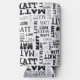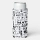 Create a very extremely personalized can sleeve. Your custom name appears all over this tall foam can wrap in a collage of different fonts and lettering styles. Black lettering is set against a white background.