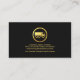 An all black cover features a gold lines placard at the base. The gold placard houses your phone contact details with your oversize prestigious name just behind. At the top of the card lies the business name "TRUCK FOR HIRE" and a slogan option to publicize your services. You can change the caption remarks to the slogan to suit your service needs. In the opposite direction is a gold semi truck logo you can use.