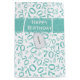 This design is a teal and white random number pattern with milestone number 70 repeated in varied sizes and angles in an all-over print. There is a teal band and a gift tag, printed on the front, with text templates so you can easily personalize the design.