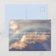 Decorate your space with uplifting words by Christian author C.S. Lewis with this customizable text and colour postcard. This design has a gorgeous blue sky and rainbow. The storm has ended; a lovely rainbow has emerged and the sun is peeking out from behind the clouds. In the centre is one of Lewis' famous quotes from Mere Christianity in default white print. The quote reads “If I find in myself desires which nothing in this world can satisfy, the only logical explanation is that I was made for another world.” The reverse side of the postcard is pale grey blue. Just hit the Personalize button to edit or enter your own favourite quote, or hit the Customize button to change the font, font colour or reverse side colour if you wish. Makes a great inspirational note or decoration. Great for lovers of C.S. Lewis, Christian authors, Bible verses, rainbows, and inspiring messages.