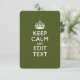 Your Keep Calm saying on a custom olive green accent colour style decor. A personalized Keep Calm style saying on a one of a kind gift. Humourous or whimsical try on your creative words on two editable lines of text. Remember to use CAPITAL letters for best results.