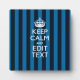 Your Text on Keep Calm Blue Stripes Decor Plaque