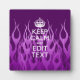 Your Text on Keep Calm Purple Racing Flames Decor Plaque