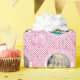 The graphic design is a simple stripes pattern with pink and white stripes, balloons, and a round picture frame for you image.