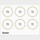 White circle ready to personalize with black text. Gold circle frame.