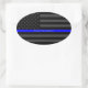 Your Text Thin Blue Line Black US Flag Accent Oval Sticker