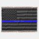 Your Text Thin Blue Line Charcoal Black US Flag Throw Blanket