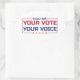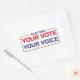 The image shows the lettering "YOUR VOTE YOUR VOICE" in clear, modern typography. The message emphasizes the importance of elections and political participation.