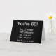 Here's a birthday card for all your in-denial friends. Fully customizable by age, it has white lettering on black background. The text starts with, "You're 60!" and continues by arguing with itself: "No, I'm not. Yes, you are." Inside is a comment on the space-time continuum. Be sure to get a nice gift for the recipient of this card to take their mind off reality! Copyright Gail Storrs 2011.