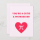 A cute, fun and nerdy Valentine's day card with a pun on "You're a cutie pie". The design feautures a pi symbol on a red heart and 3.14159265359 in red text on a pink base.
