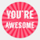 Tell someone they're awesome...with a sticker! Bold text and starburst design.