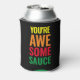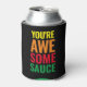 With the compliment, "You're Awesomesauce", styled in a tall block font with four bold hot pepper colours on a solid black background, this can cooler is the perfect favour to hand out on World Compliment Day (March 1) -- or any day that you feel like making someone's day, at a party, or even at the office! Reverse shows identical design.