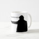 Funny pun mug, showing a man holding a mug the way one would hold a gun.