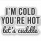 "I'm cold, you're hot, let's cuddle" funny quote.