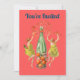 You're Invited Card featuring two women dancing around a glass bottle with flowers and oranges. Retro design with a twist. Captures the joy of celebrating an event. Customizable messages or information on both front and back. Change it to anything you like.