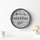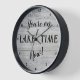 If you're wanting to add a little modern farmhouse look to your lakeside home, then this grey barnboard wood look clock with a round, deep wooden frame may be just the accent you are in search of. There is modern calligraphy text that says, "You're on Lake Time Now!" on it in black with black numerals all around that you can change to any colour(s) you want by using the blue EDIT further button. If you require any assistance, please email niteowlstudio@gmail.com.