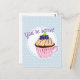 For sending notes to your sweetest friends, this postcard features cute hand-drawn, hand-coloured artwork of a chocolate cupcake with blueberry-topped frosting in a cute red striped tea cup, on a pastel blue background with white polka dots.