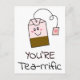 Cute Tea graphic smiling, accompanied by the "You're Tea-rrific". Hand-drawn and transformed into a graphic. Makes a great card for that someone special on Valentine's Day, or just because.