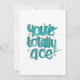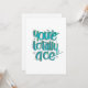 A one-off hand drawn, whimsical design suitable for lots of occasions when you want to acknowledge that special person. The lettering is teal watercolor and the back offers space for a personal message.