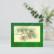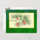 Beau art de Noël ou de Fêtes Illustration vintage d'une touffe de pin en vert avec des cônes de pin rouge à l'intérieur d'un cadre doré sur une forêt vert arrière - plan motif de pins bleus et verts.