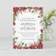 Your wedding details decorated by a floral frame design of red flowers, poinsettia, mistletoe and berries and green foliage on white background.