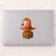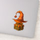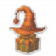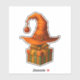 Bring a little enchantment to your gear with this warm and whimsical sticker. A crooked orange witch hat—complete with a shiny red ornament hanging from its tip—rests playfully atop a festive gift box wrapped in green and orange ribbons. Soft golden lights, a glowing Christmas tree, and a snowy windowsill create a cozy winter atmosphere full of charm and seasonal magic.