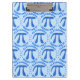 A pattern of round logo like Pi symbols are encircled by your name at the top and "geeks like pi" on the bottom for a one of a kind clipboard. From a small business to the home office or for back to school, this fun light and dark blue Pi symbol pattern clipboard will keep your papers tidy and organized with a touch of math geek humour.