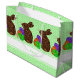 Brown Easter Bunny Easter Eggs Colourful Rabbit Fun Personalized Large Gift Bag. Can be customized to change the background colour and/or add a name, initials or fun message. This Easter Bunny with Easter Eggs is no Peter Cottontail. Bright and full of colour, he's the Easter Basket, coloured grass and jellybeans all rolled up in one, watching over his jewel tone eggs. Fun Easter Bunny with Easter Eggs done in my slices of colours style, these colourful symbols of spring are ready for a Happy Easter Holiday. Bunny Rabbit done in shades of chocolate brown with purple, orange and green Easter Eggs.