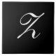 Z Monogram Initial White on Black Tile