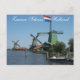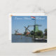 Zaanse Schans Holland Windmills Postcard. The windmills of the Zaanse Schans, Zaandijk, Zaanstad along the water with boats on a nice summer's day in Noord Holland, The Netherlands postcard. This great Zaanse Schans postcard is fully customizable, add your texts and images! A beautiful Holland postcard, send it to your friends and/ or family!