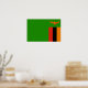 The Zambian national flag is green in color. To the right are three vertical bands in black, orange and red, above which is an eagle. The current version was adopted in 1996, and has a 2:3 ratio.