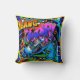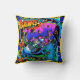 A fun and colourful alien cartoon graffiti artist throw pillow for your home.