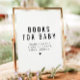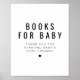 This books for baby sign features a contemporary font and modern minimalist design. Use this template to edit the fonts, font colour, and background colour to match your event needs. The simple black and white colour combination makes it the perfect addition to any event. Use this poster for your simple and clean baby shower.