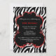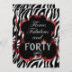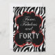 © 2013 Socialite Designs. Celebrate your 40th birthday with this sassy and chic zebra pattern, red shimmer border and bling forty text invitation. A custom design by Socialite Designs.