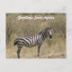 Greetings from Africa postcard featuring lone zebra in the wild in Kenya - fully customizable wording.