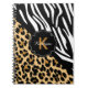 Custom monogram zebra and leopard print pattern spiral notebook.  Perfect for a journal, taking notes, work, school and home. Makes a great gift for all occasions.  Click the "Customize it!" button to change the text size, text colour, font style and more!
