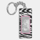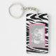 Zebra striped with pink photo frame keychain, customize with two of your own photos and add text if you wish.