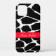 A unique bold zebra style animal print in black and white with a bright red ribbon for your name girls iphone 5 case. Personalise this item with your name. This example currently reads: Anna Bella. This original pattern is designed by Sarah Trett. www.sarahtrett.com
