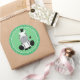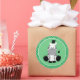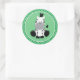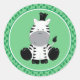 This design features a green background with a repeating pattern of jungle leaves. A cute baby clipart black and white zebra sits in the centre of the sticker.
