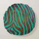 Zebra Brown and Teal Print Round Pillow