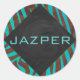 Zebra Brown and Teal with Monogram Classic Round Sticker