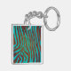 Zebra Brown and Teal with Monogram Keychain