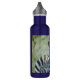 Close-up photo of a zebra foal looking at the camera; its mother partially seen to the right of photo; greenery in background. I chose a dark blue for the background colour of the bottle, but other colours are also available. This photo was created in 1996 during an African safari to Zambia.