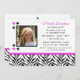 Ces invitations à la fête du 9e anniversaire sont parées en zèbre et rose, avec des étoiles roses et noires. Téléchargez et ajoutez l'image des filles d'anniversaire et les informations de la fête.