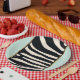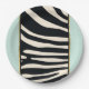 Zebra green and white print paper plate. This item is part of a collection that is customizable.