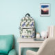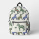 Your monogram next to a green striped zebra on the front pocket. The rest of the backpack is a pattern of blue, brick red, green and mustard striped zebras.