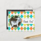 Cool, cute kids cartoon zebra with stripes on colourful argyle pattern; orange, green, teal, and yellow pattern. Great jungle, zoo animal theme kid's product!