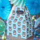 Party favour box shown in light blue in a gable style with a cute cartoon zebra.